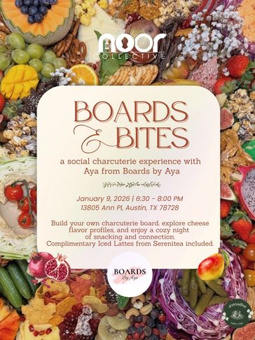Join us as we explore the healing power of botanicals, from Chinese medicine’s use of herbs to ancient traditions that celebrate plants. Then, unwind at the DIY Herbal Tea Bar, blending your own soothing tea. With Pottery Queen Taiyaba, you’ll imprint real leaves and petals into soft clay to create trinket dishes that capture the beauty and serenity of nature. Boards by Aya will be there selling her delicious charcuterie cups.